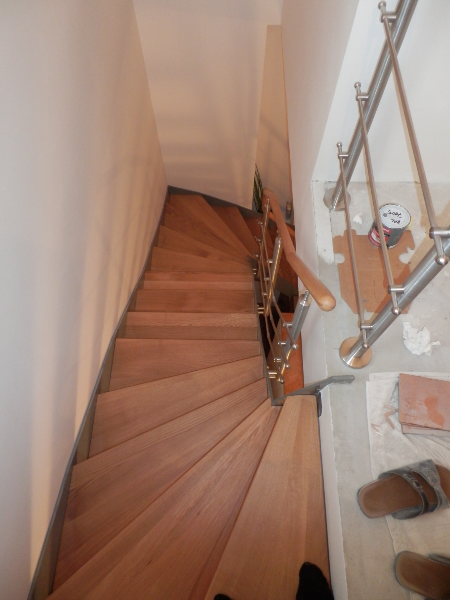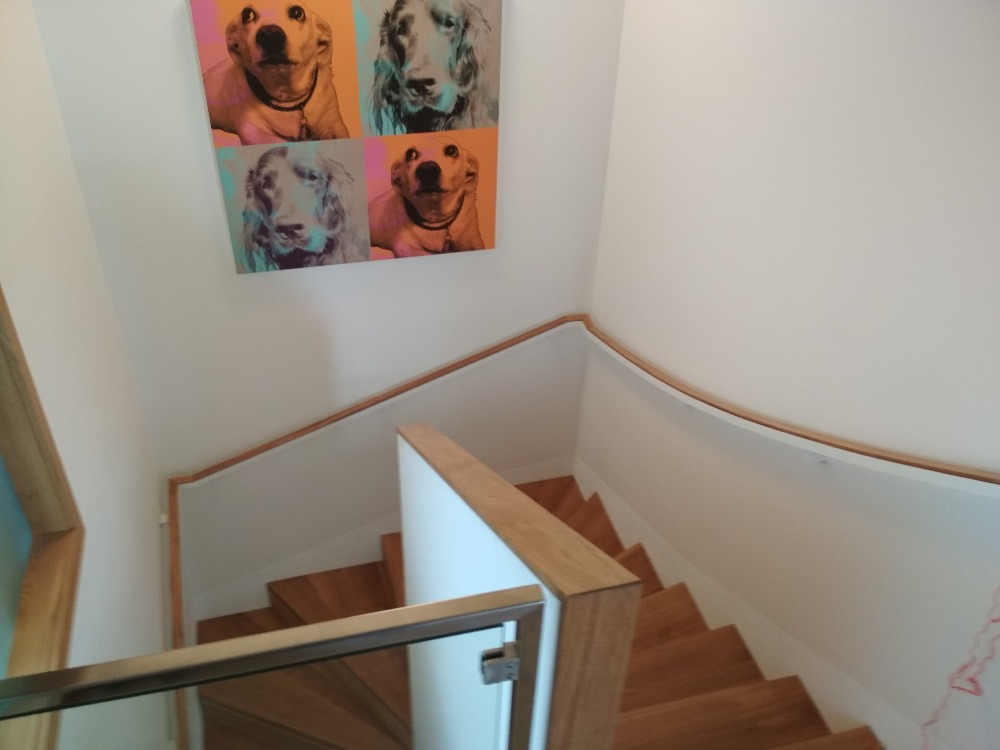 Bukové samonosné schodiště.