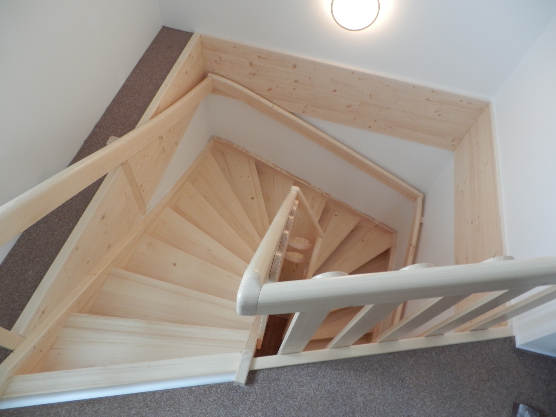 Modřínové samonosné schodiště.