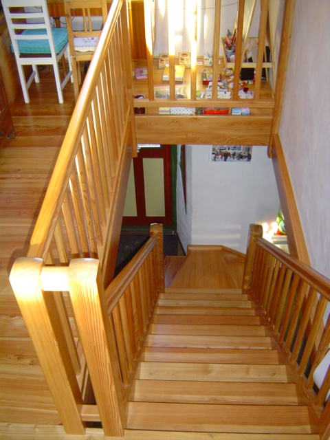Vyrábíme dřevěná schodiště ze všech našich druhů dřevin. Tvrdých dřevin - dub ,buk ,jasan ,ořech a měkých dřevin - smrk ,borovice ,modřín . Schodiště samonosná , v kombinaci s podpůrnou konstrukcí či obložení betonových.